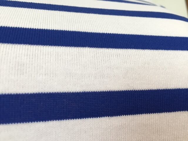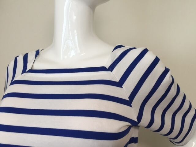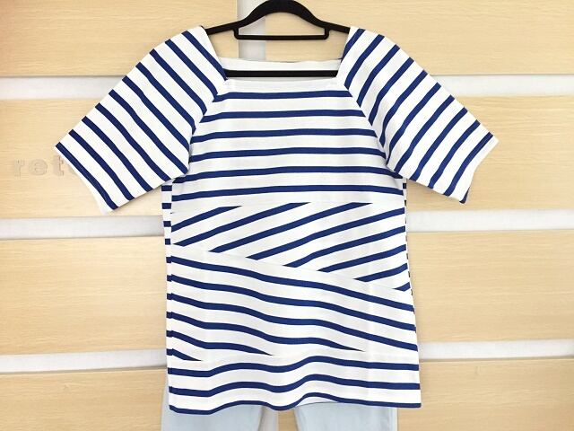 定価¥12,800- ボーダースクエアネックBLU 5分袖 カットソー 白×青 二の腕カバー 肉厚で肌が透けない 大人 カジュアルレディース トップス 日本製