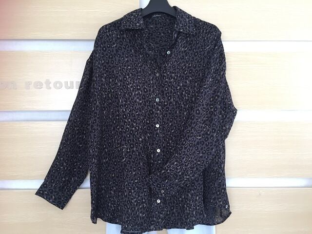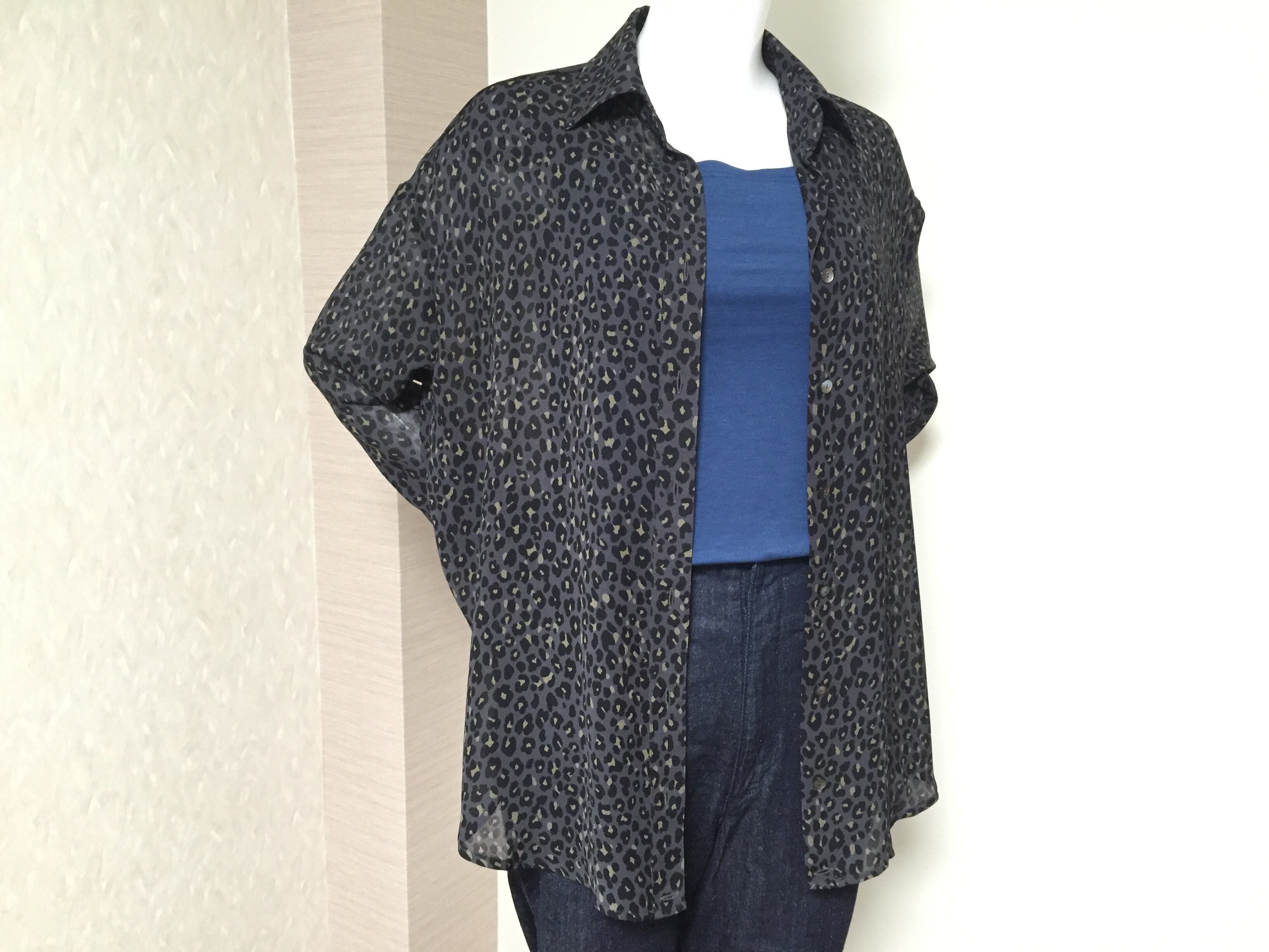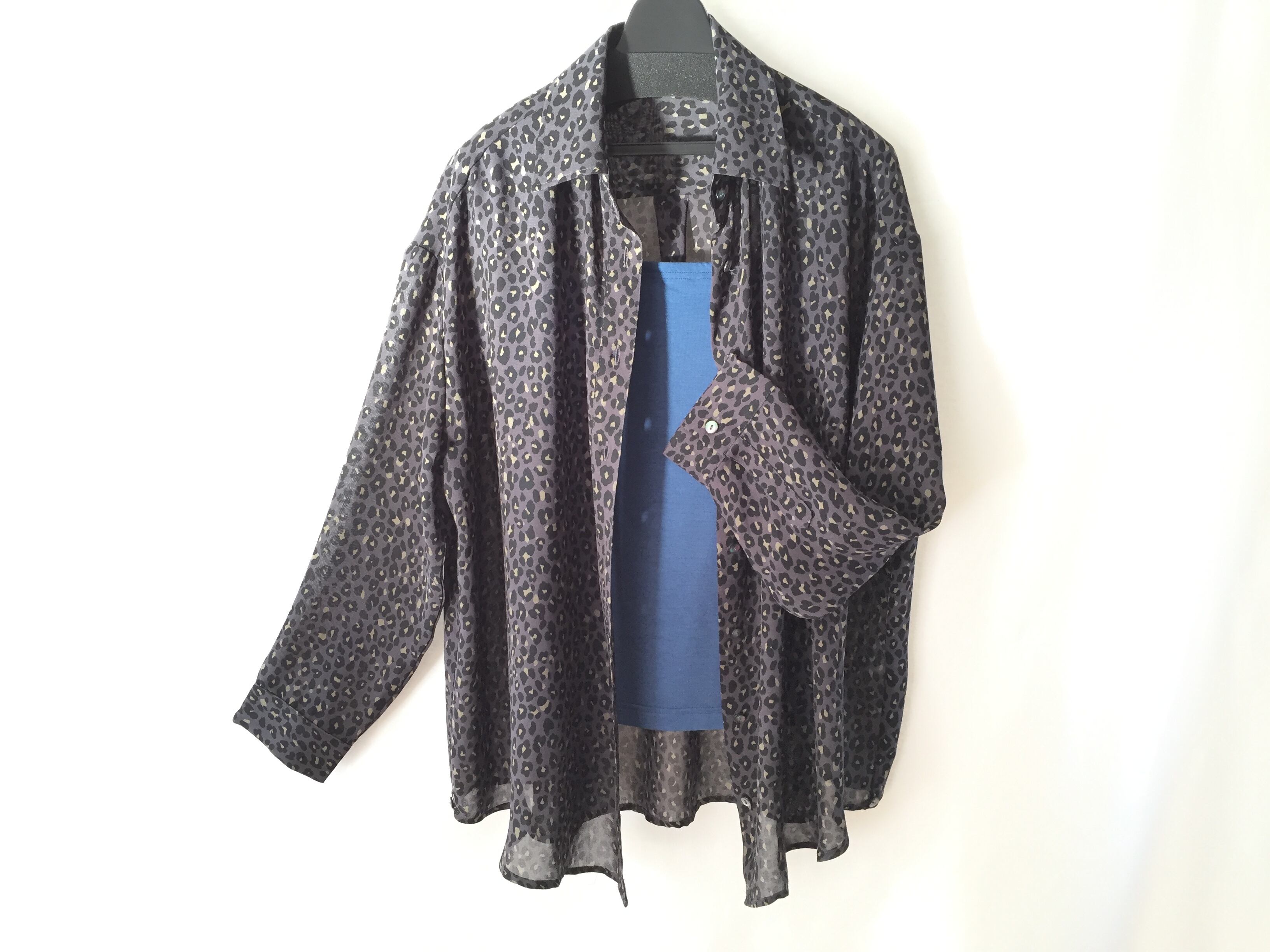 定価18,700-2WAYビックサイズシャツNVY ヒョウ柄 紺 カシュクール ゆったり 気になる体系をカバー UV対策 冷房対策 大人 カコイイ レディース トップス ブラウス 日本製