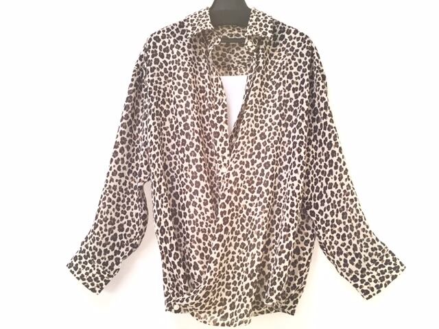 定価18,700-2WAYビックサイズシャツIVR ヒョウ柄 アイボリー カシュクール ゆったり 気になる体系をカバー UV対策 冷房対策 大人 カコイイ レディース トップス ブラウス 日本製