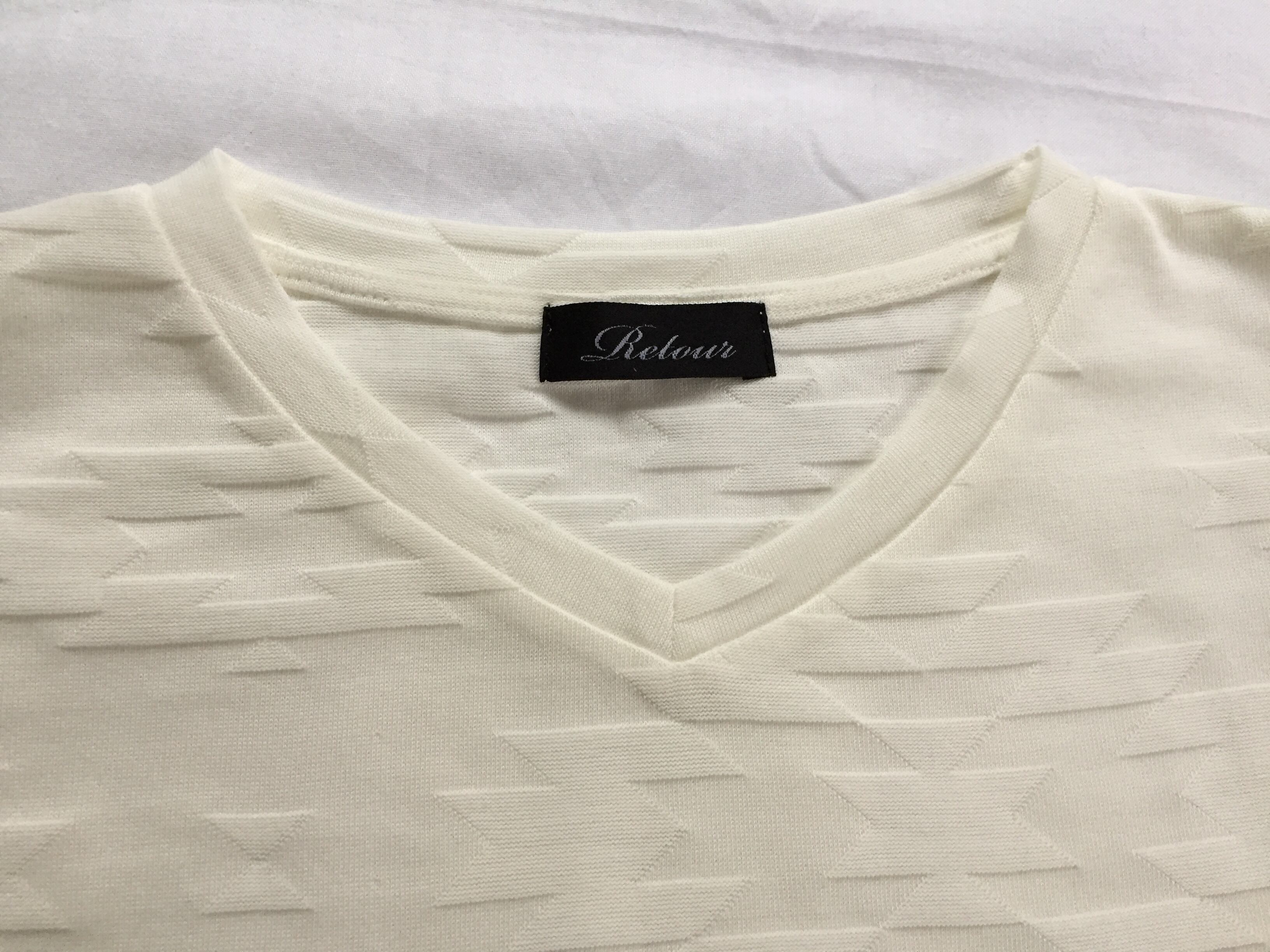 定価11,500-オルテガ織りTシャツWHT Vネック M、Lサイズ ユニセックス コットン100% 白・紺・サックス3色 オルティガ織り カジュアル トップス 日本製