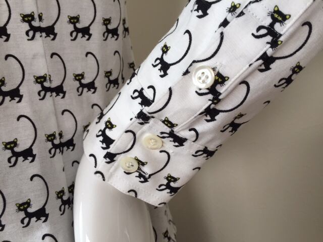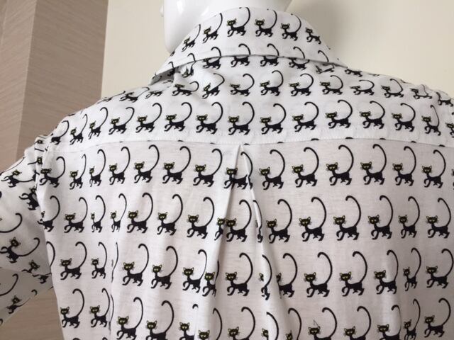 *おかげさまで完売しました* シャツブラウス猫柄 11~15号 白地 猫柄 コットン100% 大人 美シルエット 動きやすい 洗濯機○ レディース トップス シャツ ブラウス 日本製